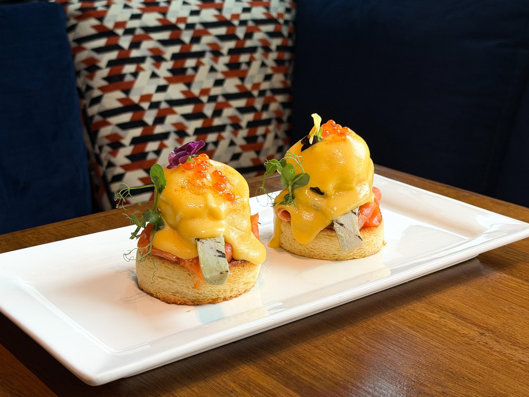 For the main event, enjoy our Savoy, a bright and comforting take on a brunch classic. At the heart of the dish are artichokes, now in season and at their best, bringing a delicate, earthy sweetness that pairs beautifully with smoked trout, poached eggs, and wilted spinach. Finished with our signature citrus hollandaise and salmon pearls, it’s a dish that feels both fresh and indulgent, perfect for the occasion.